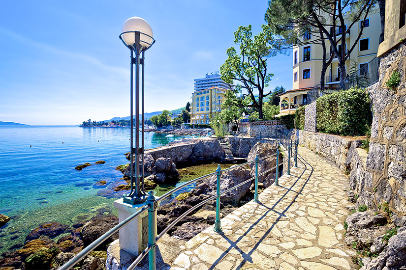 Der kroatische Ort Opatija ist seit dem 19. Jahrhundert, als die Eisenbahnen im Österreichisch-Ungarischen Reich entwickelt wurden, ein beliebter Ferienort bei Besuchern aus aller Welt. Während das milde mediterrane Klima damals die gesundheitssuchende Aristokratie anlockte, sind es heute Urlauber jeder Altersgruppe, die die Sehenswürdigkeiten in der Kvarner Bucht, die Villen und die schöne umliegende Natur aufsuchen.