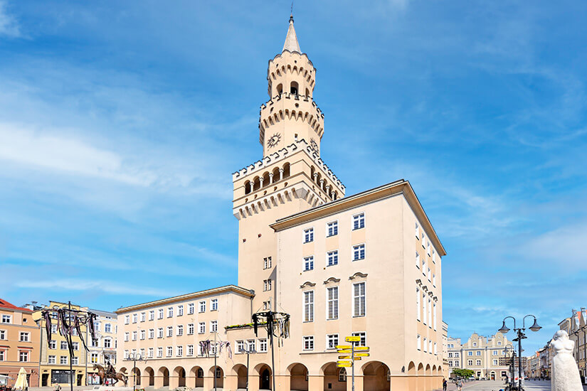 Charmant, bunt und voller Leben ist sie das Herzstück von Opole. Beim Bummel über den Marktplatz mit dem imposanten Rathaus im Stil des florentinischen Palazzos fühlt ihr euch plötzlich wie in Italien. Die restaurierten Gebäude rundherum strahlen in Pastelltönen und laden zum Staunen ein. Hier findet ihr zahlreiche Cafés und Restaurants mit Terrassen. Ideal für eine Pause mit Blick direkt auf das bunte Treiben. Wir empfehlen euch wärmstens einen Besuch auf dem Wochenmarkt, wo ihr regionale Spezialitäten kosten könnt. Außerdem findet ihr dort garantiert schöne polnische Souvenirs wie etwa handgemachte Süßwaren oder kunstvoll verzierte Keramik.