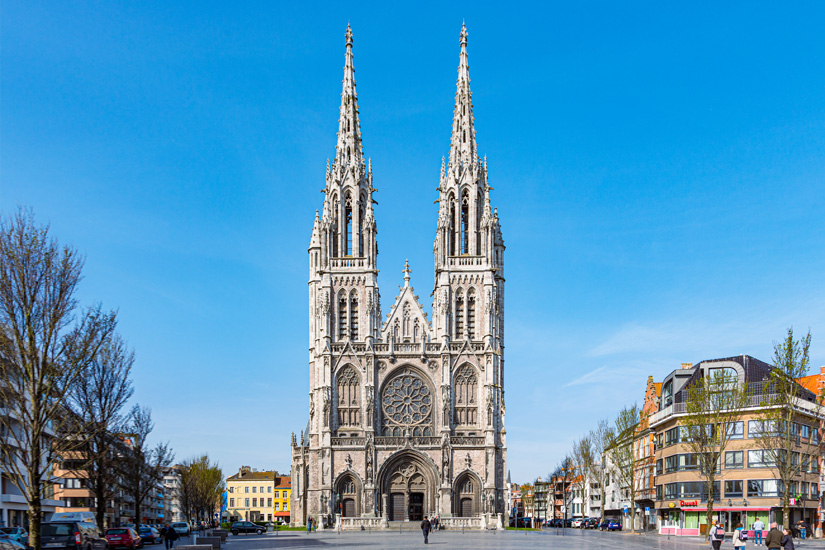 Beginnt eure Erkundungstour von Oostende zum Beispiel am Visserskai, einem kleinen Platz im Zentrum der Stadt. Hier gibt es viele Sitzgelegenheiten und attraktive Cafés, um sich erst einmal bei einem Getränk einen Eindruck von Ostende zu machen. Nur wenige Minuten entfernt befindet sich die eindrucksvolle Sint-Petrus-en-Pauluskerk, die Kirche St. Peter und St. Paul. Sie ist die Hauptkirche von Ostende und wurde im neugotischen Stil errichtet. Das heutige Bauwerk befindet sich an der Stelle einer früheren Kirche – 1899 begannen die Bauarbeiten, die der belgische König Leopold II. enthusiastisch unterstützte. Im Jahr 1908 wurde die prächtige neue Kirche fertiggestellt und trotz Zerstörungen in beiden Weltkriegen immer wieder aufgebaut. Der Architekt Louis Delacenserie wurde vom gotischen Dom in Köln und der neugotischen Votivkirche in Wien inspiriert.