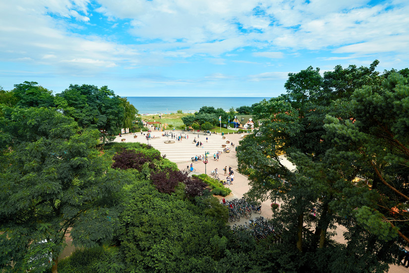 Markant für diesen Ostseestrand sind drei Wolkenkratzer. Es handelt sich um zwei Hotels und eine Mutter-Kind-Klinik. Die Gebäude prägen das Bild seit den 1960er-Jahren. Was mit wenigen Etagen geplant war, wurde 17 Stockwerke hoch. Das trübt für manche das Gesamtbild etwas ein. Andererseits ist eine Unterkunft in einem der Hotels perfekt für Familien und Paare: Ihr seid in unmittelbarer Strandnähe und beim Blick aus dem Hotelzimmer auf der Meeresseite verschlägt der Anblick jedem den Atem. Für das leibliche Wohl gibt es neben Restaurants auch kleine Kioske und Eisdielen. Daher kann jeden Tag entspannt aufs Neue entschieden werden, ob es ein gemütliches Essen am Tisch mit Blick auf den Ostseestrand sein soll oder gerade nur eine Tüte Pommes und Eis gefragt sind. Der Südstrand legt viel Wert auf entspanntes Sonnen und Planschen im Meer. Daher sind abseits vom Schwimmen keine Wassersportarten vorgesehen.