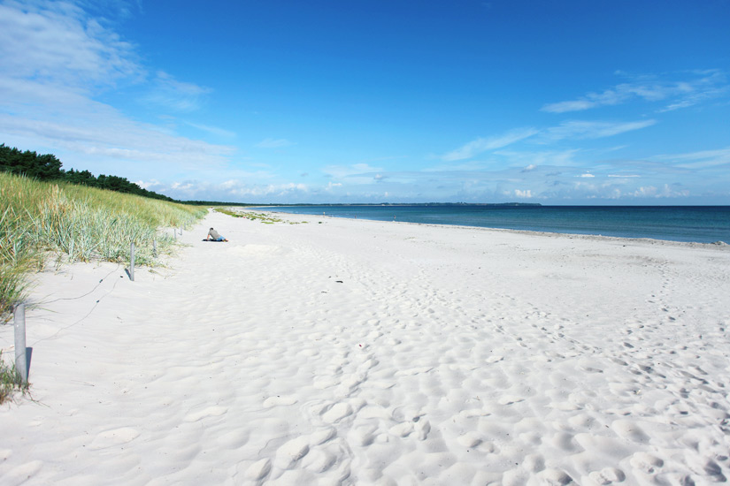 Es soll ein sehr familienfreundlicher Strandtag werden? Dann lockt der im Süden gelegene Strand auf Fehmarn. Die Insel ist die drittgrößte Deutschlands und vielen durch die Fehmarnsundbrücke ein Begriff. Sie verbindet die Insel mit dem Festland. Die von den Einheimischen „Kleiderbügel“ genannte Brücke ist vom Südstrand aus zu erkennen. Wer das Wahrzeichen aus der Nähe sehen möchte, kann einen Spaziergang vom Strand aus starten. Apropos Spaziergang: Für Paare ist dieser Strand der Ostsee in den Abendstunden eine Empfehlung. Das Spazieren bei Sonnenuntergang entlang der Promenade ist ein romantisches Highlight. Der Südstrand lockt tagsüber alle, die feine und weiße Strände lieben. Insgesamt ist er 2,5 Kilometer lang. Zum Vergleich: Die Küstenlinie der Insel Fehmarn umfasst insgesamt 78 Kilometer. Mit dem weißen Sand unter den Füßen und dem blauen Meer vor den Augen fühlt ihr euch in ferne Urlaubsträume versetzt.