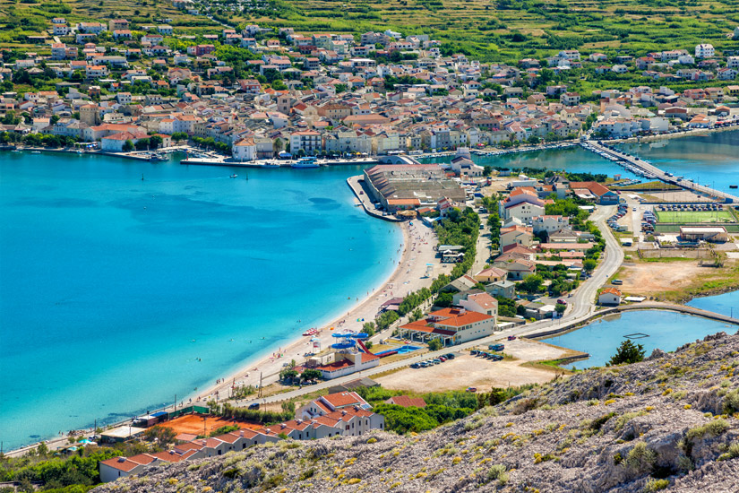 Die Stadt Pag ist der größte und wichtigste Ort auf der Insel Pag. Ihre Ursprünge gehen bis auf die Römerzeit zurück, auch wenn die ursprüngliche Ortschaft während einer Pestepidemie im Jahre 1510 niedergebrannt und am heutigen Standort neu aufgebaut wurde. Noch heute könnt ihr die Überreste der einstigen Siedlung besuchen.