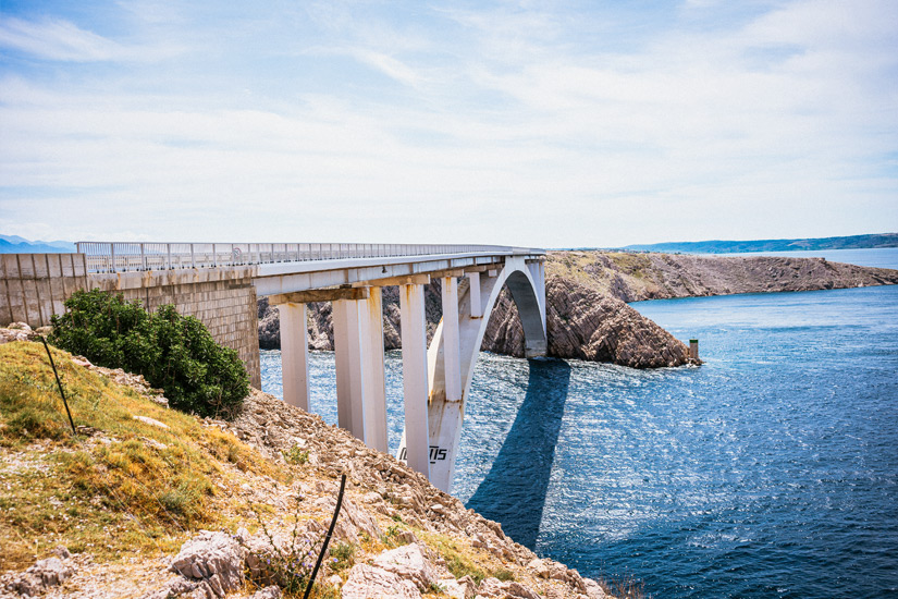 Die knapp 280 Meter lange und zehn Meter breite sowie 35 Meter hohe Pag Brücke ist die erste bauliche Sehenswürdigkeit, die ihr erblickt, wenn ihr von Süden mit dem Auto anreist. Die Brücke verbindet nämlich seit 1968 die Insel Pag mit dem Festland und ist seitdem eines der Wahrzeichen des Eilands.