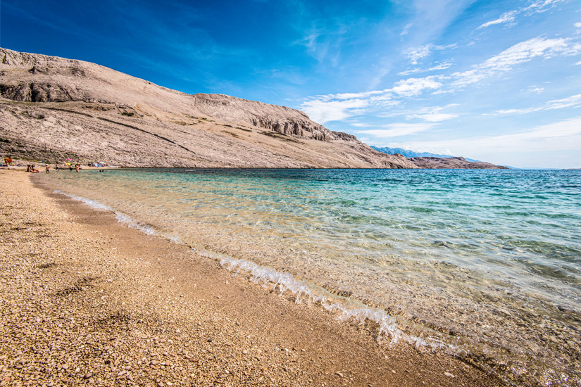 Das traumhafte Wasser der Adria lockt so ziemlich jeden Urlauber auf der Insel Pag früher oder später an den Strand. Tatsächlich findet ihr auf der gesamten Insel eine Vielzahl an Stränden, vorrangig mit Kieseln statt mit weichem Sand.