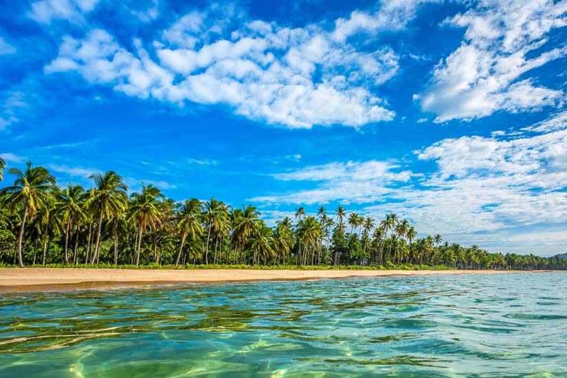 Der vielleicht schönste Strand Palawans befindet sich rund eine Autostunde entfernt von El Nido. Hier sieht es wahrhaftig aus wie auf einer Postkarte. Das Wasser ist glasklar, der Sandstrand perfekt weiß und schier endlos und am Rand gesäumt von Palmen und bunten Strandbars. Hier könnt ihr den ganzen Tag entspannen, ab und zu im Meer schwimmen oder auch den einen oder anderen Ritt auf den Wellen versuchen. Vorsicht vor herabfallenden Kokosnüssen!