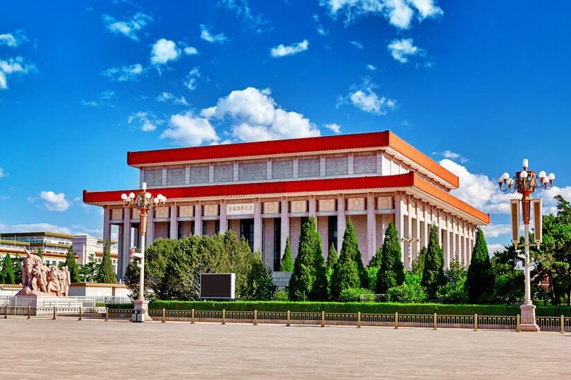 Im Süden des Tiananmen-Platzes befindet sich die Ruhestätte von Mao Zedong. Er war einer der führenden Politiker von China im 20. Jahrhundert. Als er im Jahr 1976 verstarb, wurde sein Leichnam mumifiziert und das Mausoleum gebaut. Auf 57.000 Quadratmetern findet ihr hier eine beeindruckende Gedenkhalle, eine über drei Meter große Statue von Mao sowie einen gläsernen Sarg mit seinem Leichnam. Jedoch ist umstritten, ob es sich tatsächlich um den Leichnam Mao Zedongs handelt oder nur um eine Wachsfigur. Am besten macht ihr euch davon einfach selbst ein Bild.