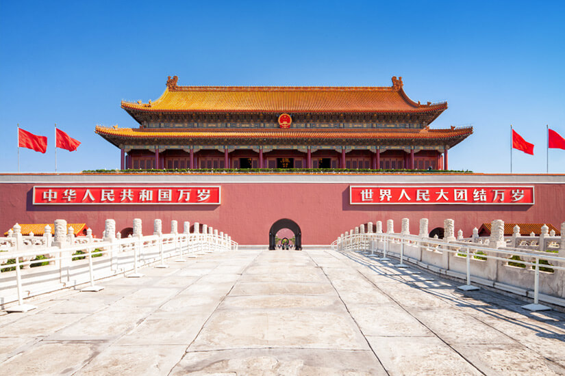 In Deutschland wird der Tiananmen-Platz als Platz des Himmlischen Friedens bezeichnet. Es handelt sich um einen der größten öffentlichen Plätze der Welt. Er befindet sich im Zentrum von Peking und umfasst gleich mehrere Sehenswürdigkeiten, die ihr nicht verpassen solltet: die Große Halle des Volkes, das Denkmal für die Volkshelden, das Tor des Himmlischen Friedens, auch das Nationalmuseum und das Mao-Mausoleum findet ihr auf dem Platz. Seine Größe ist mit 400.000 Quadratmetern beeindruckend.