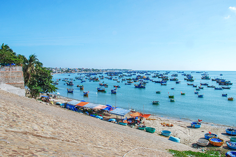 Im nordöstlichen Teil der Mũi Né Bucht gibt es ein Fischdorf, vor dem ebenfalls zahlreiche bunte Boote liegen. Schaut den Fischern bei ihrer Arbeit auf dem Wasser und an Land zu und kauft etwas von den Fängen, um es später in der Unterkunft zuzubereiten oder gleich fertig vor Ort zu verzehren. An einigen Stellen ist der Strand übersät von Muschelschalen.
