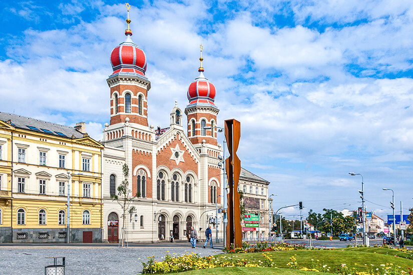 Die Große Synagoge trägt ihren Namen mit Stolz, denn sie ist, nach der Synagoge in Budapest, die zweitgrößte in Europa. Sie fasst bis zu 2.500 Besucher und wurde im 19. Jahrhundert errichtet. Ihr Stil mischt unter anderem maurische und romanische Elemente. Die neueste Renovierung der Synagoge mit ihren imposanten Türmen geht auf die 1990er-Jahre zurück. Eine weitere Synagoge, die Alte Synagoge, ist ein Geheimtipp in Pilsen und durchaus einen Besuch wert. Nach nur fünf Minuten Fußweg solltet ihr sie in einem der Hinterhöfe ausmachen.