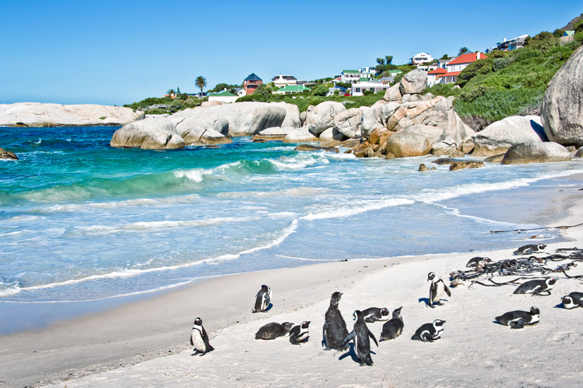 Es handelt sich bei den vor Ort lebenden Tieren um Brillenguine, die auf der Liste der bedrohten Tierarten stehen und über ein klassisch schwarz-weißes Gefieder verfügen. Sie haben sehr kurze Flügel, wiegen bis zu vier Kilogramm und sind vor allem für ihre gute Sicht unter Wasser bekannt. Neben der Pinguinbeobachtung eignet sich Simon’s Town samt Boulder Beach aber auch zum Baden, Schnorcheln und Tauchen. Verschiedene Schiffswracks befinden sich vor Ort und machen den Blick unter Wasser spannend. Außerdem könnt ihr euch auf einem nahen Golfplatz austoben.