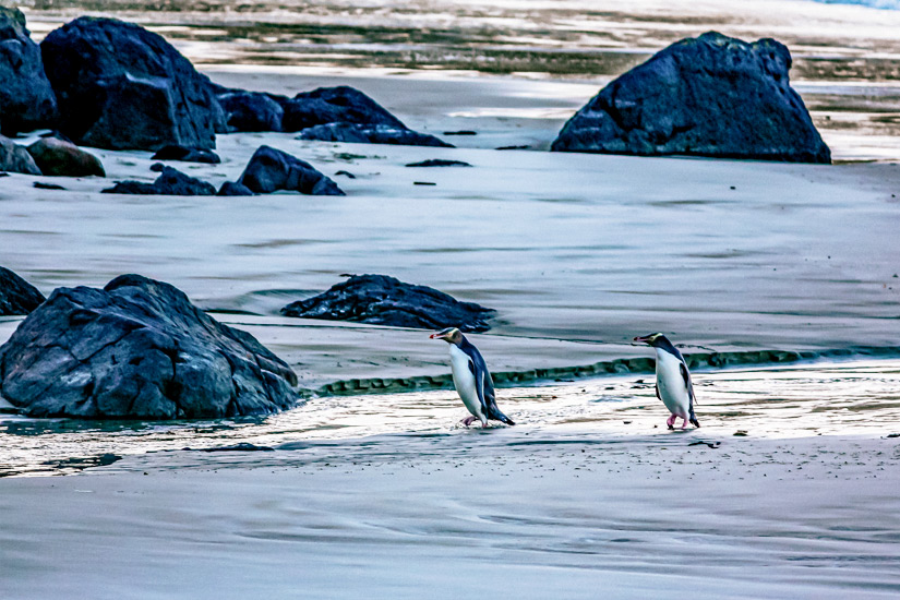 Natürlich hat sich das herumgesprochen: So wird der allabendliche Gang der Zwergpinguine zu ihren Nestern regelrecht zelebriert. Ihr könnt Besichtigungen im Hafengebiet von Oamaru buchen und dabei zwischen verschiedenen Aussichtspunkten auf Plattformen wählen. Diese sind vorhanden, damit die Menschen die Tiere nicht stören. Auch ein Rundweg ist verfügbar. Wenn ihr „in der ersten Reihe“ sitzen wollt, müsst ihr natürlich etwas tiefer in die Tasche greifen. Aber wir finden: Wenn schon, denn schon – oder?