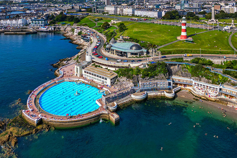 Dieses architektonische Juwel aus der Art-Déco-Zeit ist eine der ungewöhnlichsten „Strand“-Erfahrungen, die Plymouth zu bieten hat. Das 1935 erbaute Salzwasserfreibad liegt direkt am Meer unterhalb des Parks The Hoe. Von hier habt ihr einen atemberaubenden Blick über die Bucht vor der Stadt. Das Lido ist nicht nur ein Ort zum Schwimmen, sondern auch ein Stück lebendige Geschichte.