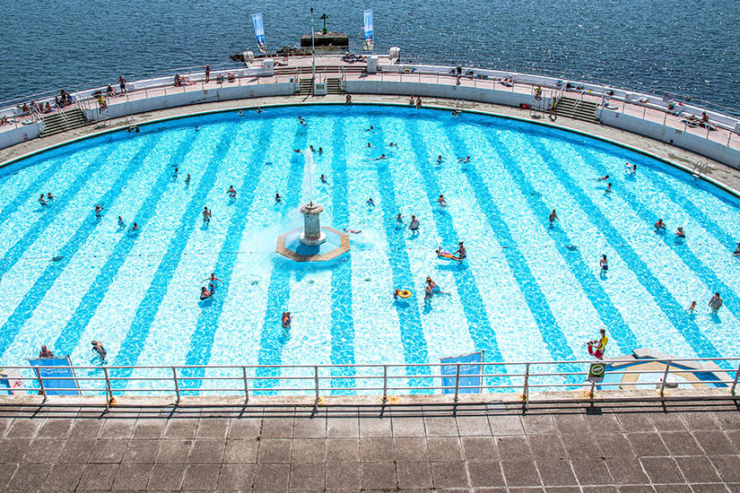 Die runde Form des Beckens und die charakteristische Architektur machen einen Besuch zu einer einzigartigen Erfahrung. Die Anlage ist von Ende Mai bis Mitte September geöffnet und bietet neben dem Pool auch Umkleidekabinen, ein Sonnendeck und eine kleine Cafeteria. Es empfiehlt sich, Eintrittskarten im Voraus zu buchen, da das Schwimmbad bei Einheimischen und Touristen sehr beliebt ist.