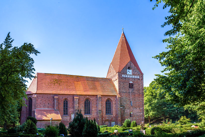 Kirchdorf ist der Hauptort der Insel und befindet sich am Ende einer langen Bucht im Süden von Poel, genannt die Kirchsee. Namensgeber des Ortes ist die bereits 1250 errichtete Kirche, die zugleich das älteste Bauwerk auf der gesamten Insel ist. Bis heute ist die Poeler Kirche mit einer Turmhöhe von 47 Metern eine Landmarke und zugleich Magnet für Besucher der Insel. Jeden Sonntag nach dem Gottesdienst wird für Interessierte eine Führung angeboten. Ihr erfahrt Details zur Entstehung, die vermutlich in bis zu fünf Etappen über 200 Jahre hinweg erfolgte und die Mischung aus verschiedenen Stilen erklärt. Dabei steht auch der Turm im Zentrum, der insgesamt acht Ecken besitzt und daher den liebevollen Beinamen „Bischofsmütze“ trägt.