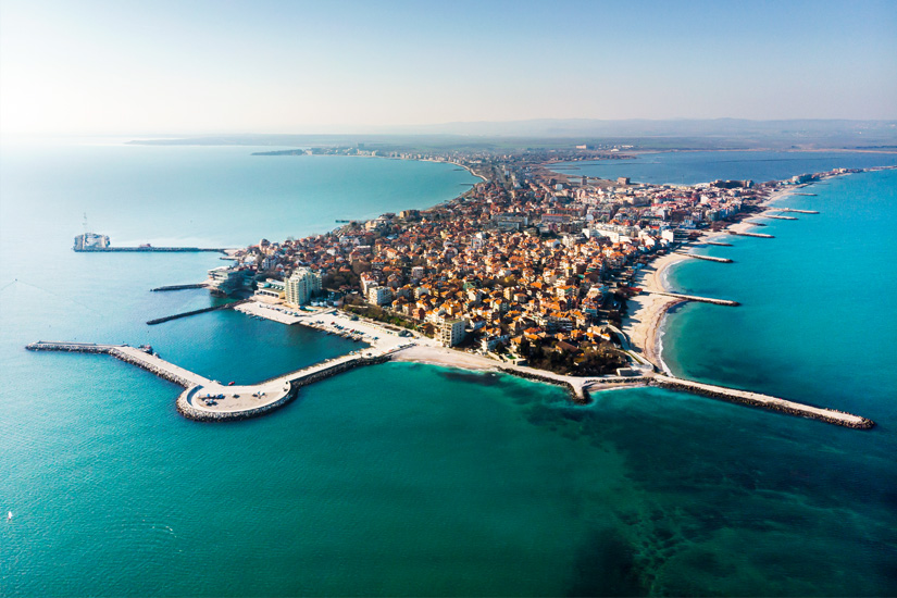 In einer Region mit so vielen interessanten Städten und tollen Stränden nimmt das beschauliche Pomorie eine Sonderstellung ein. Das liegt vor allem an der malerischen Lage. Die Stadt befindet sich auf einer langgestreckten Halbinsel 20 Kilometer südlich des bekannten Sonnenstrands und wird an drei Seiten von Wasser umschlossen: Im Süden und Osten vom Schwarzen Meer, im Norden vom Pomorie-See, wobei es sich um eine Lagune handelt. Maritimer geht es also kaum.