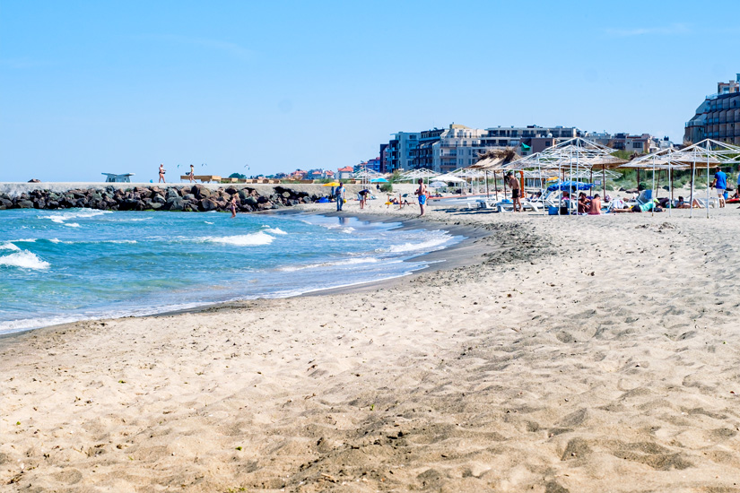 Der Zentralstrand ist eines der Highlights von Pomorie. Schließlich möchten die meisten Urlauber auch die Gelegenheit nutzen, in das warme Schwarze Meer zu springen. Der parallel zur Promenade verlaufene Strand ist dafür ideal. Er ist quasi der Stadtstrand, bietet sämtliche Annehmlichkeiten für einen gelungenen Tag am Wasser und liegt nahe an den meisten Hotels, Restaurants und Geschäften.