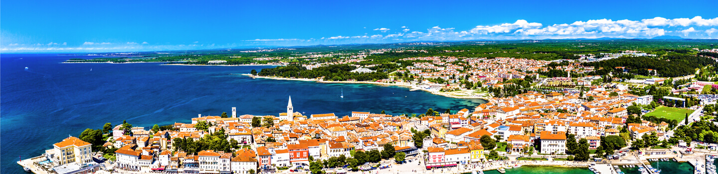 Im Nordosten des adriatischen Meeres schmiegt sich eine von Kroatiens schönsten Städten auf einer schmalen Halbinsel an glitzerndes Wasser. Poreč vereint an der Westküste Istriens alle Zutaten für den kroatischen Traumurlaub: malerische Buchten, eine imposante Altstadt, abwechslungsreiche Erlebnisse und zauberhafte Sehenswürdigkeiten.
