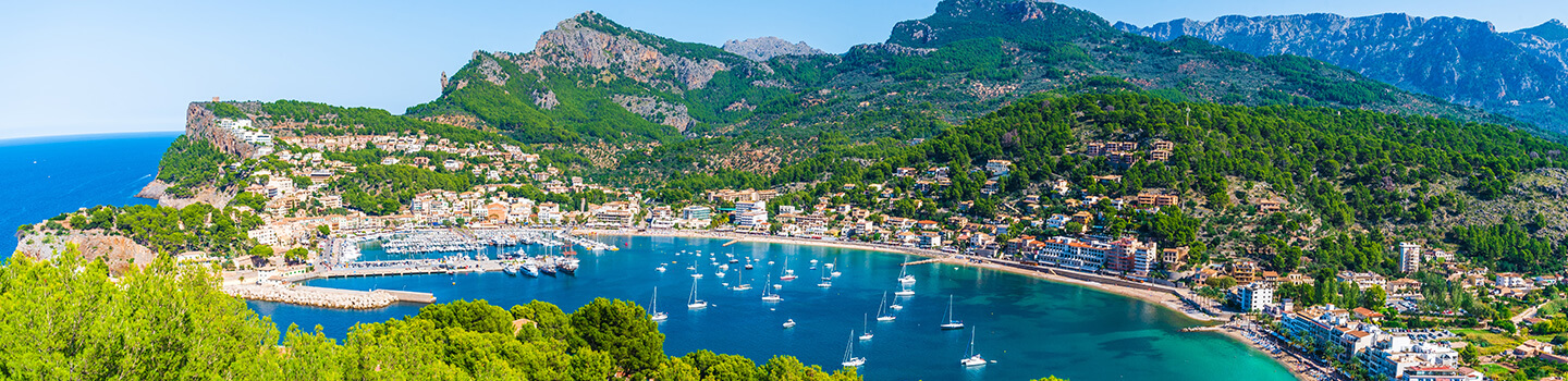 Nordwestlich auf der Baleareninsel gelegen, präsentiert sich Port de Sóller in einer traumhaften Kulisse. Freut euch auf direkte Ausblicke auf den Hafen und das Meer sowie den Schutz der hohen Berge des umliegenden Gebirges. In unmittelbarer Nähe, nur ca. sechs Kilometer südöstlich, befindet sich die Kleinstadt Sóller, die samstags zu belebten Märkten einlädt. Und 30 Kilometer südlich liegt die Hauptstadt Palma de Mallorca, wo ihr wahrscheinlich mit dem Flugzeug ankommt und euren Balearen-Urlaub beginnt.