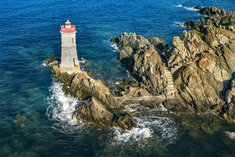 Eine ebenso faszinierende Aussicht erwartet euch am Leuchtturm Capo Ferro, den ihr nach einer kurzen Wanderung durch den Ort am gleichnamigen Kap erreicht. Dabei spaziert ihr an Macchia (mediterrane Buschvegetation) und einen recht steilen Feldweg hinauf, bevor ihr den Leuchtturm am Canale delle Bisce erreicht. Dieser wies im 19. Jahrhundert den Seefahrern auf dem Mittelmeer ihren Weg.