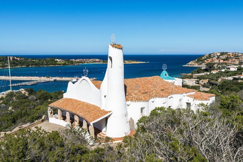Oberhalb der Stadt entdeckt ihr eine der bekanntesten Sehenswürdigkeiten von Porto Cervo: die Kirche Stella Maris. Durch ihr charakteristisches terracottafarbenes Schindeldach wird euch dieses Gotteshaus schon von Weitem auffallen. Die Kirche besticht mit ihrer weißen und schlichten Fassade im puristischen, neosardischen Stil. Im Inneren erwartet euch eine ansprechende Kombination aus Tradition und Moderne. Ein Spaziergang zur Kirche ist bestens mit einem romantischen Bummel durch Porto Cervo zu kombinieren und seid ihr oben angekommen, werdet ihr mit einem tollen Blick auf das Meer und die Dächer der Stadt belohnt.