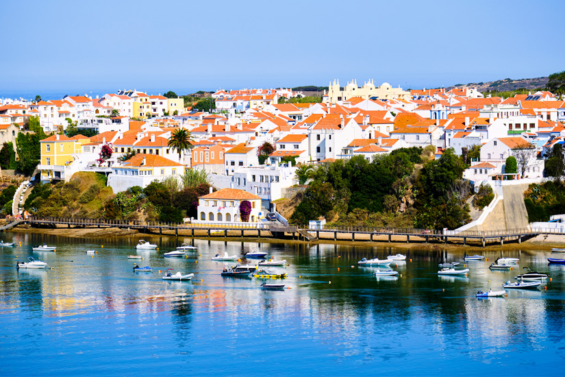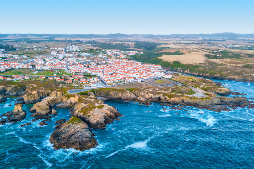 Ebenfalls 18 km von Porto Covo entfernt, allerdings in südlicher Richtung, befindet sich Vila Nova de Milfontes (zu Deutsch “Neues Dorf der tausend Quellen”) nördlich der Mündung des Rio Mira. Der vom damaligen portugiesischen König 1486 gegründete Ort wurde von 1599 bis 1602 um das Forte de São Clemente erweitert, welches unter anderem zum Schutz vor nordafrikanischen Piraten nötig wurde. Davon profitierte zudem das 30 km flussabwärts liegende Odemira. Weitere Sehenswürdigkeiten stellen die Pfarrkirche und der Leuchtturm am Cabo Sardão dar. Weil von Vila Nova de Milfontes aus der erste Flug von Portugal zur früheren Kolonie Macau gelang, erinnert ein Denkmal an dieses Ereignis. Gleich mehrere Strände, beispielsweise die Praia da Franquia am Rio Mira und Ortszentrum und die Praia do Carreiro da Fazenda, bieten Abwechslung vom Kulturprogramm.