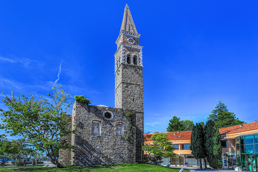 Kirchen sind optimal für eine kleine Reise in die religiöse Vergangenheit eines Ortes. Als eines der interessantesten Bauwerke von Portorož darf sich die Kirche St. Bernardin rühmen. Sie stammt aus dem 15. Jahrhundert und fungierte zunächst als Kloster, später dienten ihre Räumlichkeiten der österreichischen Armee. Auch als Sitz der Zoll- und Steuerverwaltung wurde die Kirche St. Bernardin bereits genutzt. Sehenswert sind der gut erhaltene Glockenturm und die Stützmauer mit ihren markanten Bögen.