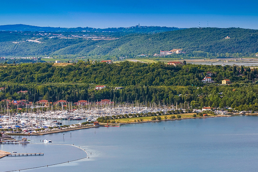 Der Jachthafen mit über 1.000 Liegeplätzen liegt außerhalb des Ortes, grenzt aber im Süden direkt an Portorož. Ein Spaziergang durch den Hafen lohnt sich spätestens bei einer Stippvisite in den Restaurants, oder wenn ihr auf dem Wasser aktiv werden wollt. Es werden Wasserski, Boote und Jetskis vermietet.