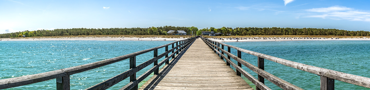 Sie zählt zu den markantesten Wahrzeichen der Gemeinde: Die 394 Meter lange Seebrücke von Prerow erstreckt sich direkt in das Meer hinein. Seit ihrer Eröffnung im Jahr 1993 entwickelte sich diese Konstruktion zum beliebten Treffpunkt für Spaziergänger, Angelurlauber und Naturbeobachter. Robuste Holzplanken führen euch weit hinaus auf das blaue Wasser.
