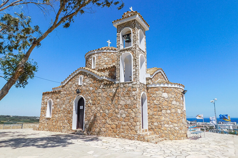 Auf einem Hügel bei Protaras befindet sich eine Kapelle, die besonders hübsch anzusehen ist. Viele Paare lassen sich hier trauen, denn schöner kann die Kulisse wohl nicht werden. Um die Kirche namens Profítis Ilías zu erreichen, muss man eine schmale Steintreppe überwinden. Im Inneren sind alte Gemälde und Verzierungen im byzantinischen Stil sowie ein hölzerner Altar zu bewundern. Das Beste ist der Blick auf die Landschaft, wenn ihr vor dem Bau steht. Von dort erstreckt sich das Mittelmeer weit bis an den Horizont.