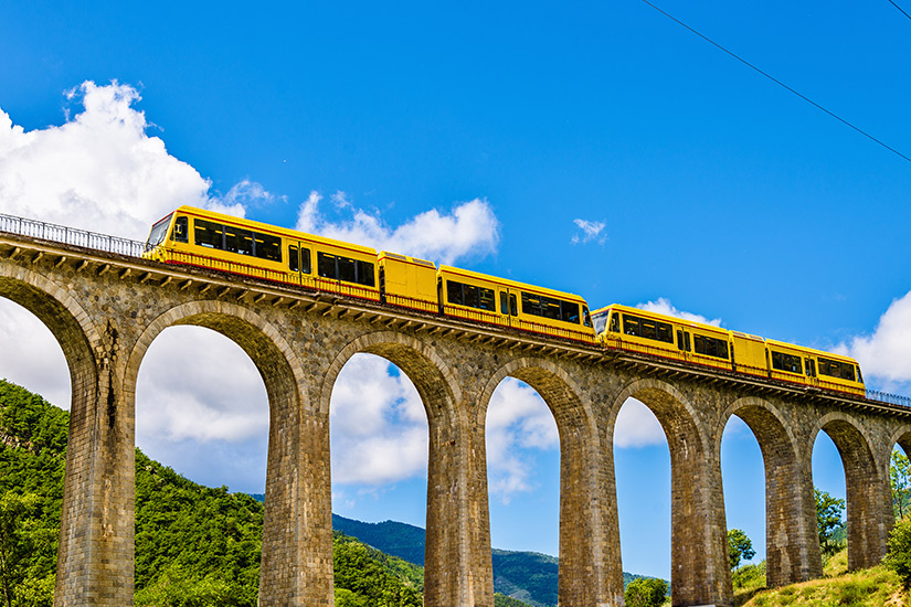 Eines der Markenzeichen der Pyrenäen ist der gelbe Zug. Er führt auf rund 60 Kilometern von Villefranche-de-Conflent nach Latour-de-Carol. Auf dem rund dreistündigen Weg werden 1.200 Höhenmeter erklommen und mehr als 600 Bauwerke passiert. Der Zug ist über 100 Jahre alt und verwöhnt euch mit Ausblicken, die den Pyrenäen-Urlaub krönen können – oder eine Alternative zum Aktivurlaub bilden. Toll ist die Fahrt natürlich auch mit der ganzen Familie.