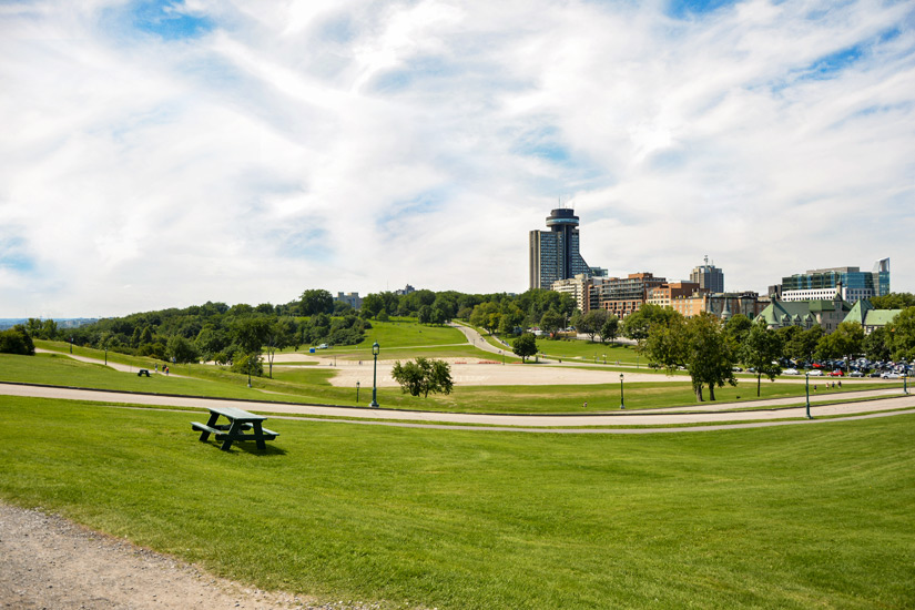 Der weitläufige Park im Quebecer Bezirk Montcalm erhielt seinen Namen nach den legendären Schlachten, die Briten und Franzosen hier im Siebenjährigen Krieg ausgetragen haben. Die Abrahams-Ebene bildet eine malerische Kulisse für das jährliche, große Sommerfestival und regelmäßige Openair-Konzerte. Bei den Einheimischen ist die historisch bedeutsame Grünanlage oberhalb des Sankt-Lorenz-Stroms zum Picknicken, Radfahren und Entspannen beliebt.