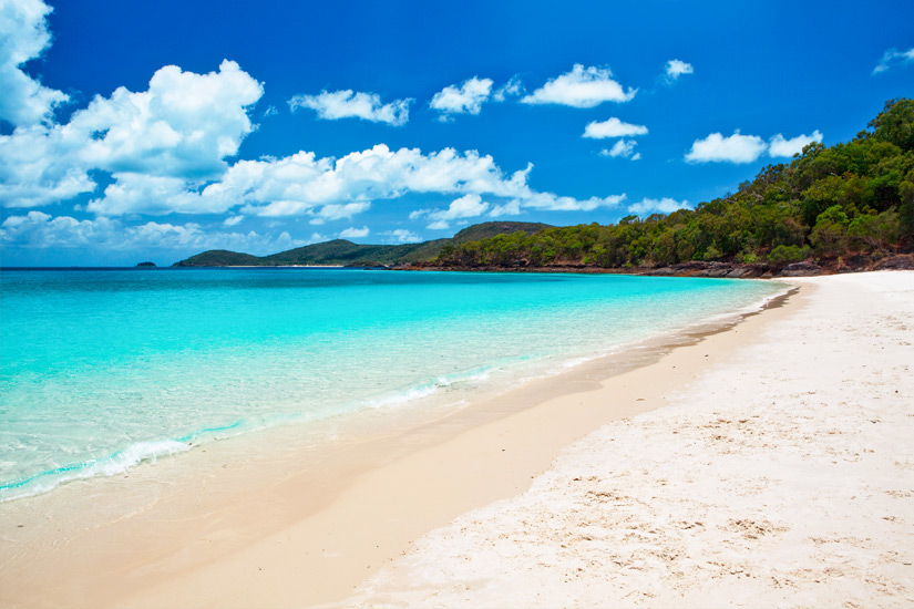 Ein Paradies auf Erden: Der sechs Kilometer lange Whitehaven Beach auf der Inselgruppe Whitsunday Islands gilt als weißester Strand der Welt. Der Sand hat einen Quarzgehalt von knapp 99 Prozent und sieht aus wie in die Landschaft gemalt. Wenn ihr eure Zehen in den puderfeinen, strahlend weißen Sand taucht, kommt pures Urlaubsglück auf. Einen spektakulären Blick auf den Traumstrand genießt ihr vom Tongue Point. Unbedingt die Kamera mitnehmen!
