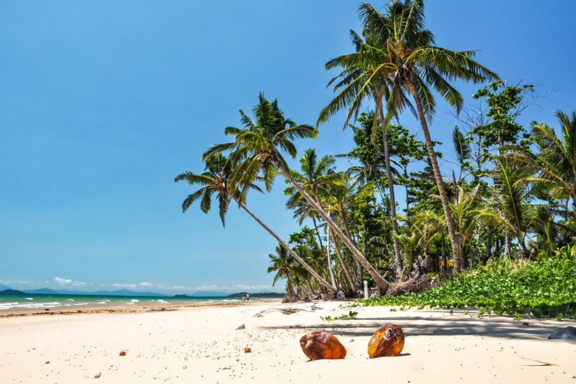 Auf der halben Strecke von Townsville City nach Cairns lohnt ein Abstecher nach Mission Beach mit seiner 14 Kilometer langen gold-gelben Küstenlinie. Der weitläufige Strand gleicht einem riesigen Sandspielplatz, gesäumt von Palmen, hübschen Strandresorts und gemütlich-lockeren Cafés. Eine Tauchstation und Wassertaxen nach Dunk Island verbinden die Sonnenanbeter mit der Abenteuerwelt im Great Barrier Reef.