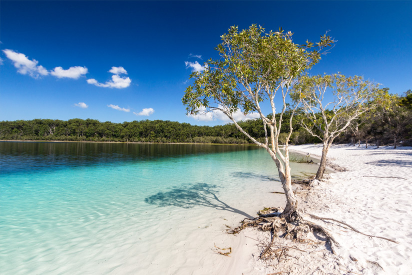 In der Sprache der Aborigine heißt diese Insel einfach “Paradies”. Fraser Island ist die größte Sandinsel unseres Planeten und überrascht auch sonst mit maximalem Urlaubsspaß. Straßen sucht man hier vergebens, stattdessen könnt ihr mit einem Geländewagen über den 120 Kilometer langen “75 Miles Beach” sausen. Aber Vorsicht – auf der Sandpiste landen auch die Flugzeuge vom Festland. Auf Fraser Island ist alles auf Sand gebaut. Sogar Eukalyptusbäume und tropischer Regenwald wachsen hier auf Sanddünen, in deren Mitte sich knapp 200 Süßwasserseen gebildet haben. Der bekannteste ist der glasklare Lake McKenzie, an dessen strahlend weißem Strand ihr einen herrlichen Badetag genießen könnt. Auch der Lake Birrabeen und die warmen Champagne Pools am Meer laden zum Baden ein.