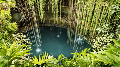 Die mexikanische Halbinsel Yucatán hat neben einer schönen Karibikküste ein beeindruckendes Hinterland im Angebot. Berühmtester Badeort ist das auf einer großen Lagune liegende Cancún, wo ihr euch zum Beispiel an die Playa Delfines, Playa Chac-Mool oder der Playa Marlin legen könnt. Etwas weiter südlich steht mit Playa del Carmen ein weiterer auf Tourismus ausgerichteter Ort zur Verfügung. Taucht im Urlaub auf Yucatán nicht nur vor der Küste, sondern auch in die Geschichte und Kultur ein! Während die Mayastätte Tulum direkt am Meer liegt, müsst ihr für einen Besuch von Chichén Itzá in den dichten Dschungel der Halbinsel vordringen. Die Ruinen, die die alte Hochkultur der Mayas hinterlassen hat, gehören zu den 7 Weltwundern der Neuzeit. Fasziniert werdet ihr auch von den Cenoten sein, wobei es sich um mit Süßwasser gefüllte Kalksteinlöcher handelt. An ihren Wänden ranken Pflanzen herab.