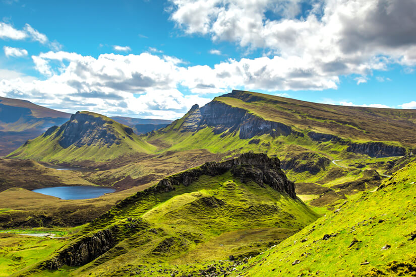 Nach so viel Urbanität wird es Zeit für die ländlichen Vorzüge Schottlands. Fahrt mit dem Mietwagen durch die Highlands, die grasbewachsenen Hügel werden euch in Staunen versetzen. Ein beliebter Abschnitt der Highlands ist das Tal Glen Coe. Hin und wieder befinden sich Parkflächen an der Straße, so dass ihr aussteigen und das Panaroma mit der Kamara festhalten könnt. Am Ende des Tals trefft ihr auf den Ort Glencoe (zusammengeschrieben!) am Loch Leven, das wiederum ins Loch Linnhe übergeht. Bei Lochs handelt es sich in Schottland um Seen oder Meeresbuchten. Das Berühmteste, Loch Ness, ist nur eines von vielen und längst nicht das Spektakulärste. Auf jeden Fall lohnenswert ist Loch Lomond gleich nördlich von Glasgow. An den Lochs trefft ihr häufig auf Burgruinen, bei denen ihr nicht lange zögern werdet, sie abzulichten. Beispielhaft und natürlich unvollständig seien hier nur Eilean Donan Castle und Castle Stalker genannt. In Abhängigkeit von der Zeit, die ihr für euren Urlaub in Schottland habt, ist an der Westküste Schottlands die zu den Hebriden zählende Isle of Skye empfehlenswert. Sie zeichnet sich durch eine zerklüftete Landschaft und malerische Fischerdörfer aus. Tipp: Wenn es euch nicht reicht, einen Wisky einfach nur im Geschäft zu kaufen, könnt ihr eine der vielen Brennereien aufsuchen, eine Führung mitmachen und dort eine Flasche Hochprozentiges kaufen.