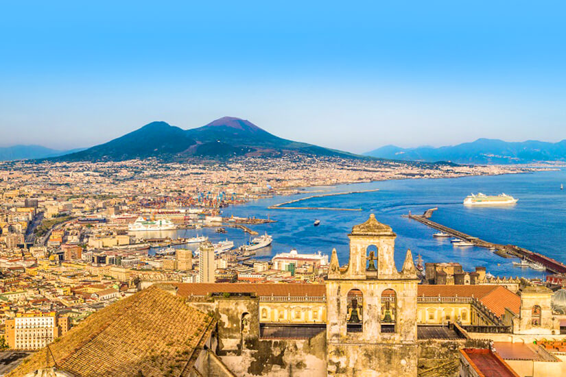 Für einen Aufenthalt in Neapel darf man weder lärmempfindlich sein noch es allzu genau mit den Verkehrsregeln nehmen. Auf den Straßen und in der Öffentlichkeit geht es laut zu. Erkundet als Erstes die Altstadtgassen. Dabei werdet ihr den einen oder anderen Höhenmeter zurücklegen, den es geht steil nach oben. Lass euch in Neapel außerdem nicht die lebhafen und bunten Märkte entgehen. Unten, nah am Wasser, steht der Palazzo Reale mit der großzügigen Piazza del Plebiscito. Die Fläche wird von der Stadt für Veranstaltungen genutzt. Dreht ihr euch vom Palazzo Reale um 180 Grad weg, blickt ihr auf die Kirche San Francesco di Paola mit ihren bogenförmigen Säulengängen. In unmittelbarer Nähe befindet sich mit der Galleria Umberto I aus dem Ende des 19. Jahrhunderts eine hübsche Einkaufspassage. Von dort aus sind es nur ein paar Schritte bis zum Castel Nuovo. Eine ältere Festung, das Castel dell’Ovo, wurde auf ein gleich am Festland gelegenen Inselchen erbaut und ist über einen Damm erreichbar.