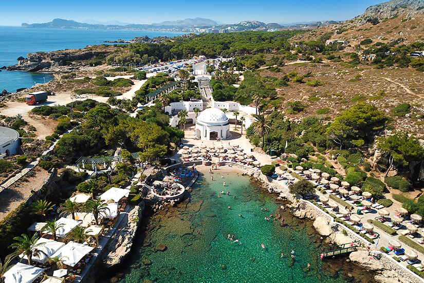 Am südlichsten Punkt der Insel erwartet euch das Naturspektakel von Prasonisi Beach, wo Ägäis und Mittelmeer aufeinandertreffen. Die Szenerie ist einer der Gründe, warum viele Besucher diesen Teil von Rhodos als am schönsten empfinden. Auf der Halbinsel erwartet euch wilde, unberührte Landschaft mit dramatischen Dünen. Die Anthony Quinn Bay bezaubert mit ihrer filmreifen Kulisse aus smaragdgrünem Wasser und imposanten Felsen – perfekt zum Schnorcheln und für romantische Stunden zu zweit. Faliraki Beach hingegen verbindet entspannte Strandtage mit lebhaftem Entertainment für alle, die Action und Entspannung gekonnt kombinieren möchten.