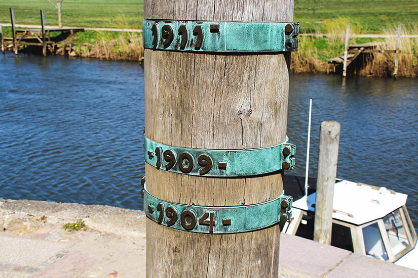 Viele Überschwemmungen haben Ribe mit der Lage in Wassernähe im Laufe der Jahrhunderte heimgesucht. Die Sturmflutsäule aus den 1920er-Jahren erinnert an die verschiedenen Naturkatastrophen. An dem Eichenstamm sind bronzene Ringe befestigt, die die jeweiligen Stände anzeigen. Besonders verheerend war die Flut im Jahr 1634, als das Pegel bis zu zwei Meter vor der Kirche stieg. Das könnt ihr anhand der berühmten Stormflodssøjlen nachvollziehen.