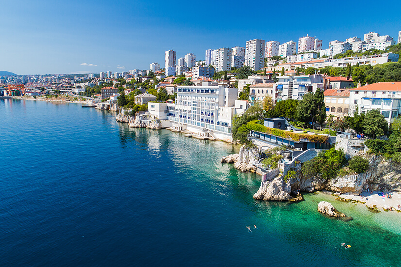Auch wenn Rijeka nicht die erste Adresse für Badeurlauber darstellt, könnt ihr euch hier nach einem ausgiebigen Sightseeing-Trip im Meer erfrischen. Der Strand Ploče ist dabei wohl der bekannteste Treffpunkt von Einheimischen und Urlaubern. Dieser besticht nicht nur mit sauberer Wasserqualität und Sicherheit, sondern auch mit einem barrierefreien Zugang und zahlreichen Snackbars. Auch Wassersportler kommen hier auf ihre Kosten und können sich ihre Zeit mit Tauchen, Schnorcheln oder Windsurfen vertreiben.