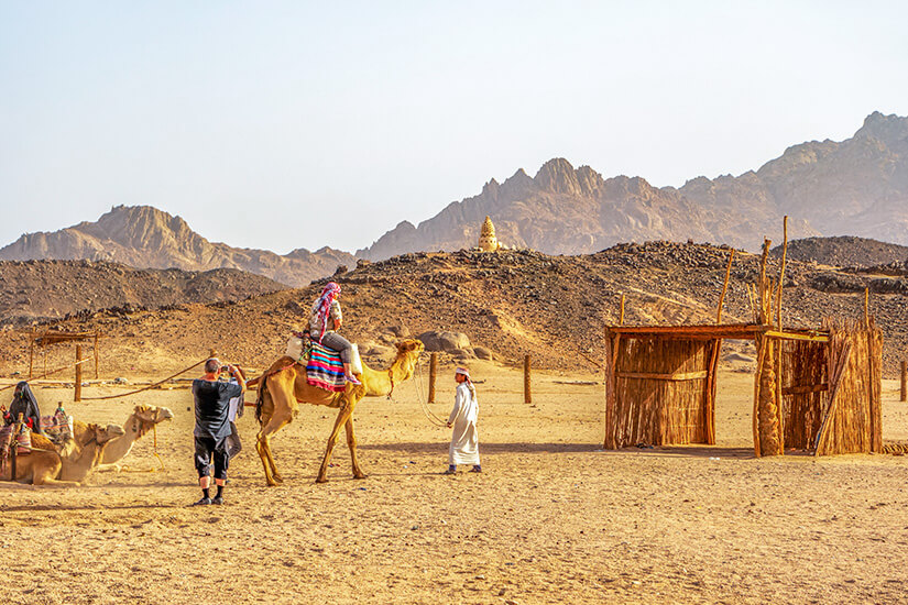 Ihr möchtet wissen, wie die ägyptischen Wüstenbewohner leben? Dann solltet ihr einen geführten Ausflug in ein Beduinendorf machen. Es gibt Touren mit einem Geländewagen oder Kamelritte. In der Regel gehört ein geselliges Dinner in einem Beduinenzelt dazu. Wer einen längeren Ausflug bucht, kann sich nachts in der Wüste die funkelnden Sterne anschauen.