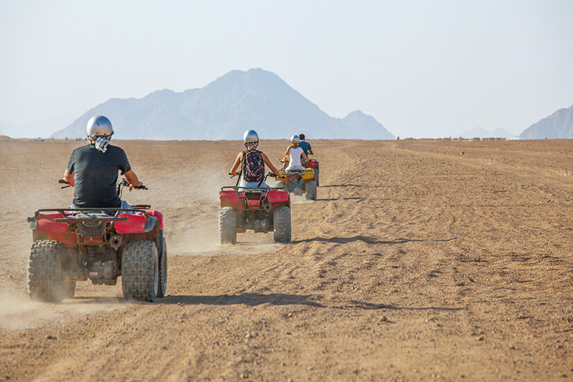 Ägypten ist ideal für rasante Quad-Touren. Dort erlebt ihr Action und Abenteuer pur. Anfänger können sich eine kurze Einweisung geben lassen oder geführte Quad-Ausflüge buchen. Die Touren sind nicht nur für Fans ein echtes Highlight. Auf diese Weise lernt ihr die Umgebung von Safaga von einer ganz anderen Seite kennen.