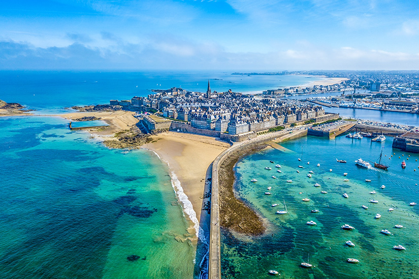 Saint-Malo, St. Malo oder Sant-Maloù (auf Bretonisch): Diese Namen umschreiben ein und denselben Ort an der bretonischen Küste. Die historisch schöne Stadt besticht allein schon mit ihrer malerischen Lage, bei Ebbe zieht sich das Meer weit zurück. Vor euch breiten sich Strände der sogenannten „Smaragdküste“ des Atlantiks aus, deren Bezeichnung bereits verrät, dass ihr, je nach Lichteinfall, auf leuchtend grünes Wasser trefft. Dazu kommt das nostalgische Flair in der von einer Stadtmauer umgebenen Altstadt, die mit ihren verwinkelten Gassen zu Entdeckungstouren verführt. Freut euch auf alte Forts und Gebäude, die ihre ganz eigene Geschichte erzählen, und lasst euch im Nu in die Vergangenheit der „Stadt der Seeräuber“ katapultieren!