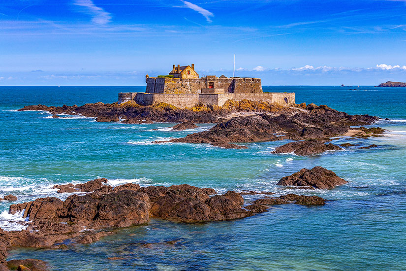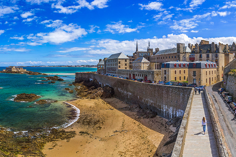 Die zwei Kilometer lange Stadtmauer umschließt das Zentrum von Saint-Malo und eignet sich für einen Spaziergang, der euch mit dem Urlaubsort vertraut macht. Entlang des Bauwerks seht ihr einerseits die in Reih und Glied gebauten Stadthäuser aus Stein, andererseits begleitet euch die Aussicht aufs Meer. Schon im sechsten Jahrhundert wurde Saint-Malos Altstadt errichtet, aber im Zweiten Weltkrieg großflächig zerstört. Die Einheimischen ließen es sich nicht nehmen, die Häuser größtenteils originalgetreu wieder aufzubauen, sodass eine Reise durch die Zeit trotzdem möglich ist. Zu den wiedererrichteten Gebäuden zählen die Reederhäuser aus dem 18. Jahrhundert, in denen früher Händler ihr Zuhause hatten, sowie die Kathedrale Saint-Vincent. Der Bau an dem Gotteshaus begann 1146 und wurde erst im 18. Jahrhundert vollendet. Die aus dem Jahr 1743 stammende Kapelle Saint-Sauveur wurde hingegen von Kriegszerstörungen verschont.