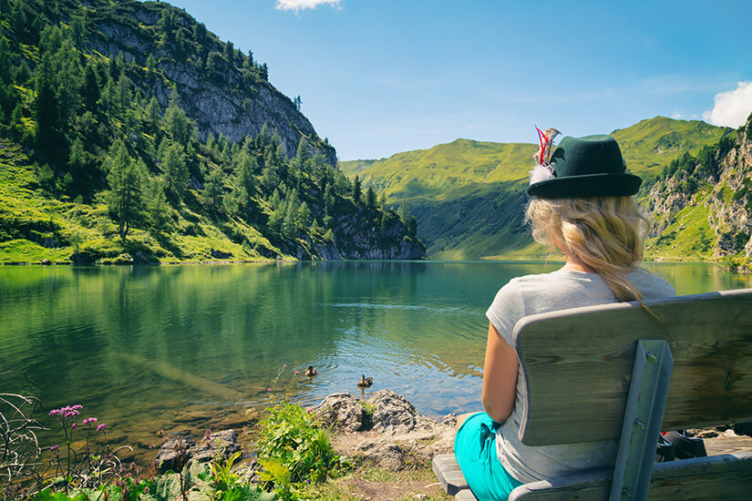 • Der Tappenkarsee ist ein beliebter Haltepunkt für Wanderer, die das Panorama über den See bewundern.