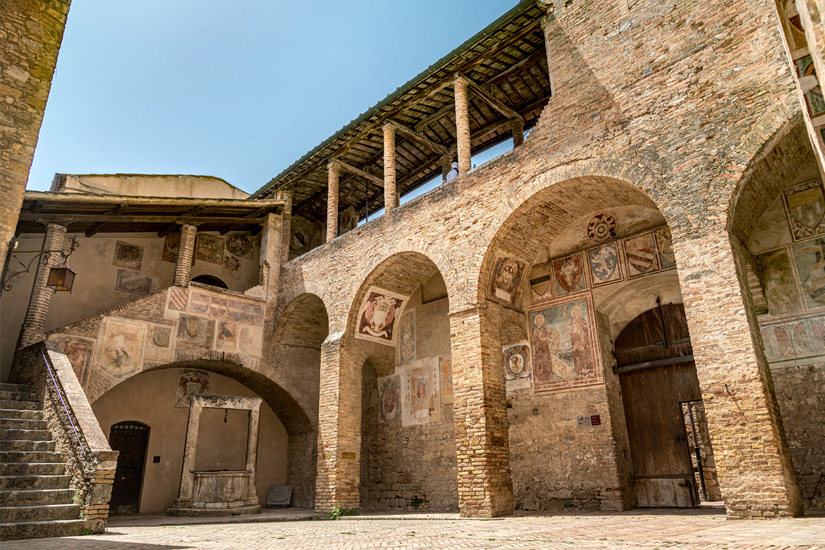 Der Palazzo Comunale war einst das Rathaus der Stadt und fungiert heute als Stadtmuseum. Ihr könnt den alten Ratssaal “Sala Dante”, dessen Name an den berühmten Dichter erinnert und weitere Räume besichtigen oder euch von den Fresken im Innenhof beeindrucken lassen. Auf den Fresken sind Wappen zu sehen, die wichtige, ehemalige Amtspersonen von San Gimignano zeigen.