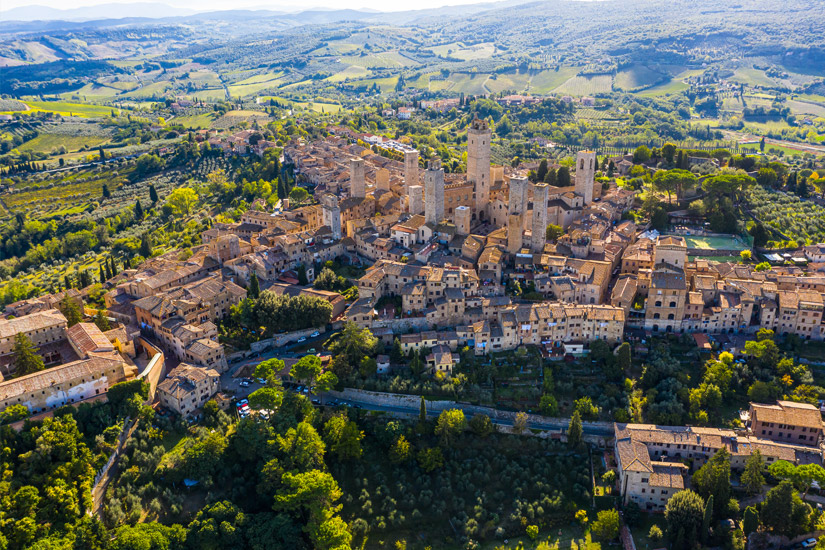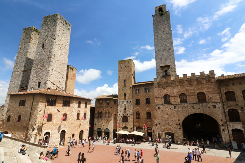 Ein von 13 Türmen dominiertes Stadtbild und historische Bauwerke erwarten euch in San Gimignano. Dazu gesellen sich die malerische Umgebung der Toskana und reichlich Gelegenheiten, das italienische Dolce Vita kulinarisch und aktiv so voll und ganz auszukosten.