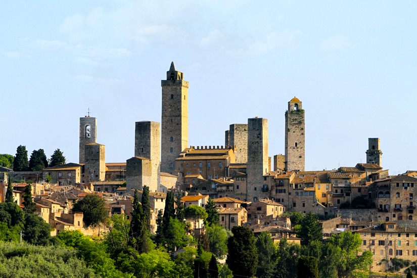 Der Norden Italiens ist nach einigen Stunden Autofahrt erreicht – zumindest ab Süddeutschland kann diese Variante lohnenswert sein. Zwar liegt San Gimignano nicht ganz weit nördlich in Italien, die Fahrtzeit ab München beträgt aber “nur” etwa acht Stunden. Immerhin habt ihr dann vor Ort euren eigenen PKW parat und könnt nach Herzenslust diverse Ausflugsziele anfahren. Alternativ geht es mit dem Flugzeug schneller in die Toskana. San Gimignano hat jedoch keinen eigenen Flughafen. Ihr müsst einen Flug nach Florenz buchen, der zum Beispiel binnen anderthalb Stunden ab Frankfurt am Main absolviert werden kann. Ab Florenz nehmt ihr einen Bus oder wählt die Kombination aus Zug und Bus.Von der Hauptstadt der Toskana sind es noch rund 60 Kilometer bis zum Ziel.