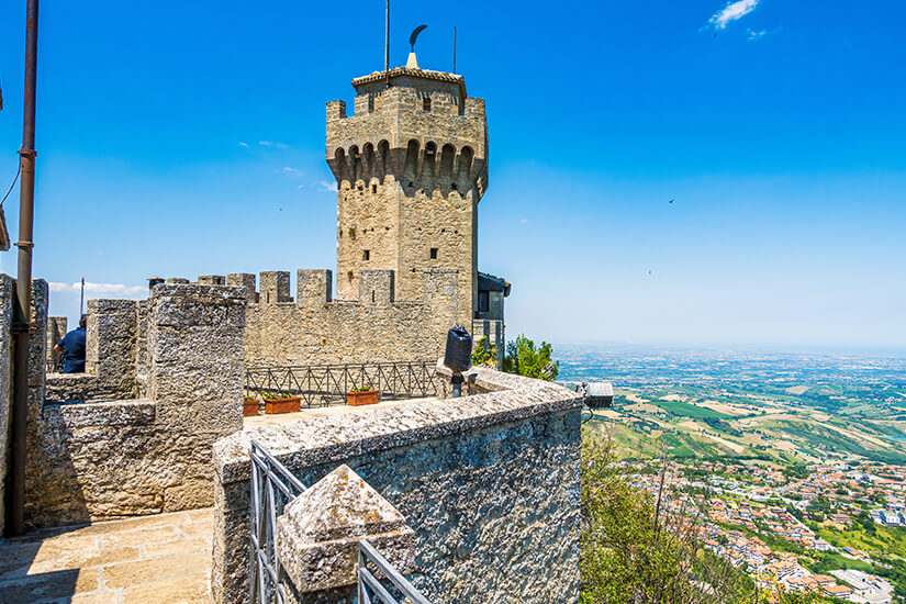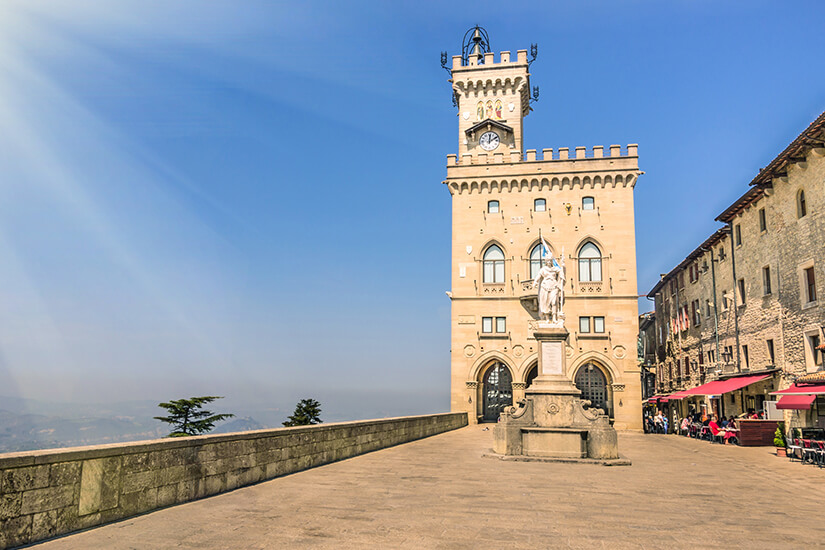 Die Republik San Marino ist eine von sechs Zwergstaaten in Europa und sicherlich eines der besonders sehenswerten Ziele. Es handelt sich außerdem um die älteste bestehende Republik der ganzen Welt. Die Gründung San Marinos fand im Jahr 301 statt. Seither gab es noch nie einen Fürsten oder Könige. Stattdessen werden alle sechs Monate zwei politische Vertreter (Capitani Reggenti) gewählt, die auf rein formeller Ebene sich gegenseitig kontrollierenden Regierungschef sind. Hier erscheint alles etwas kleiner, sympathischer, überschaubarer – kein Wunder, dass San Marino mittlerweile mehr als nur ein Geheimtipp für den Urlaub in Italien ist! Auf rund 60 Quadratkilometern Fläche erwarten euch historische Zeitzeugen, die euch mit dem sehr traditionellen Charme des Kleinstaates begrüßen.