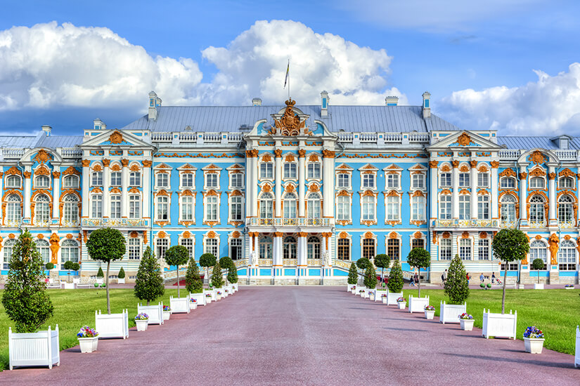Ein wenig außerhalb der Stadt, nämlich in Puschkin, befindet sich der Zarskoje Selo – der Zarenhof. Auch in diesem Zarenpalast erwarten euch pompöse Räume mit wertvollen Kunstschätzen sowie eine wunderschöne Parkanlage. Das Highlight ist der Katharinenpalast mit dem weltberühmten Bernsteinzimmer, das als achtes Weltwunder bekannt ist. Im Jahr 1755 wurde es von Bartolomeo Rastrelli eingerichtet und ausgestattet.